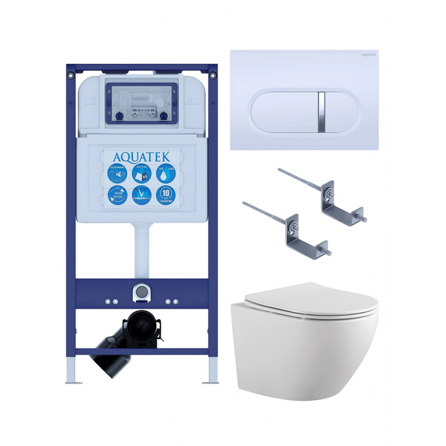 Комплект унитаз с инсталляцией, кнопкой и сиденьем SET AQUATEK ЕВРОПА-042 4в1 безободковый купить с доставкой. 100% Оригинал. Гарантия!
