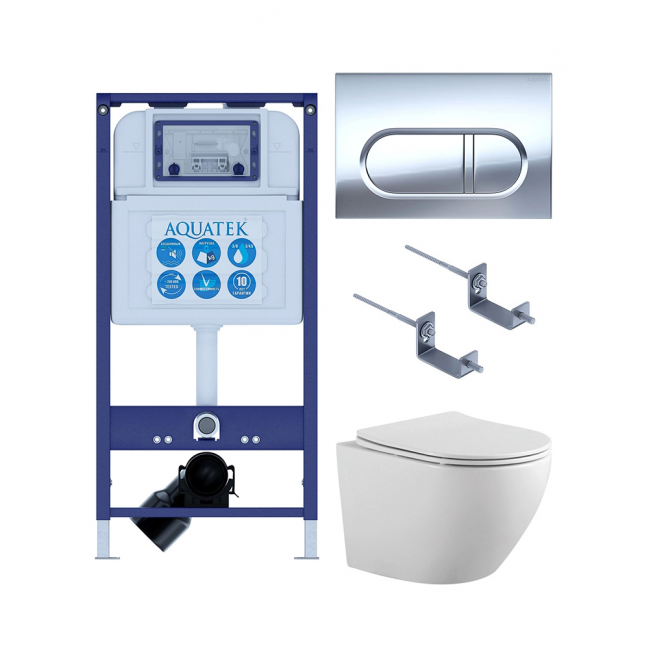 Комплект унитаз с инсталляцией, кнопкой и сиденьем SET AQUATEK ЕВРОПА-043 4в1 безободковый купить с доставкой. 100% Оригинал. Гарантия!
