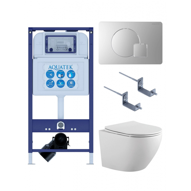 Комплект унитаз с инсталляцией, кнопкой и сиденьем SET AQUATEK ЕВРОПА-068 4в1 безободковый купить с доставкой. 100% Оригинал. Гарантия!