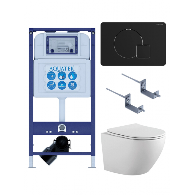 Комплект унитаз с инсталляцией, кнопкой и сиденьем SET AQUATEK ЕВРОПА-069 4в1 безободковый купить с доставкой. 100% Оригинал. Гарантия!