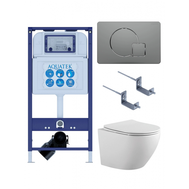 Комплект унитаз с инсталляцией, кнопкой и сиденьем SET AQUATEK ЕВРОПА-070 4в1 безободковый купить с доставкой. 100% Оригинал. Гарантия!
