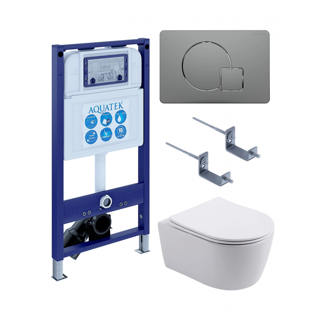 Комплект унитаз с инсталляцией, кнопкой и сиденьем SET AQUATEK ЕВРОПА New-070 4в1 безободковый купить с доставкой. 100% Оригинал. Гарантия!