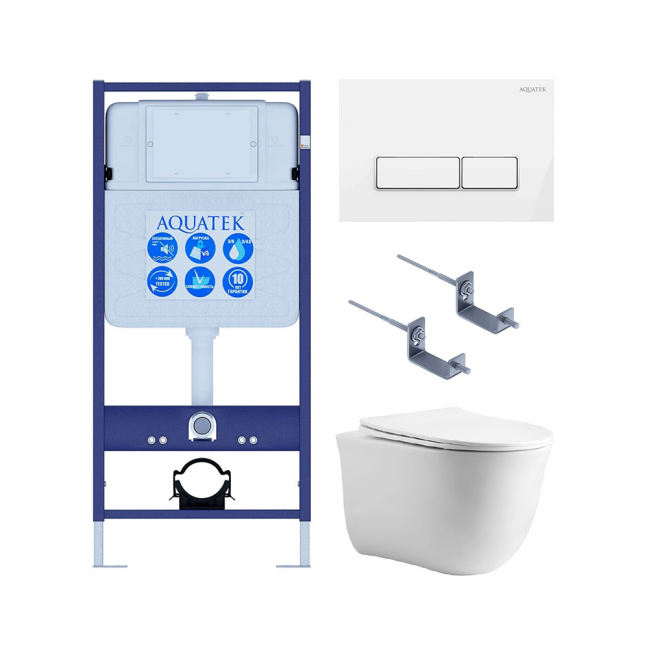 Комплект унитаз с инсталляцией, кнопкой и сиденьем SET AQUATEK КЛАССИК cm-061 4в1 безободковый купить с доставкой. 100% Оригинал. Гарантия!