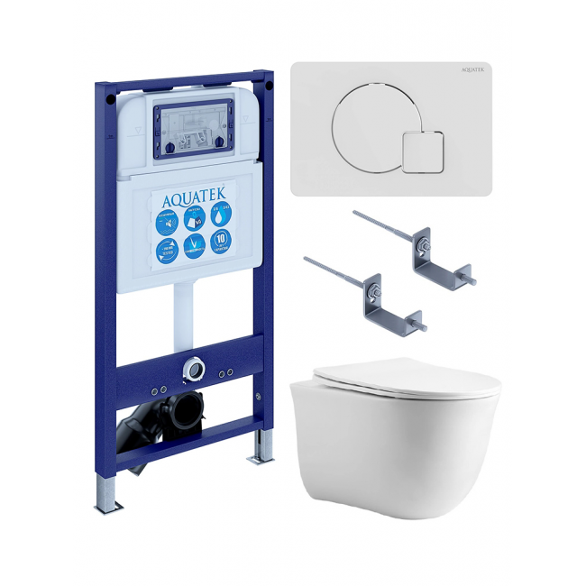 Комплект унитаз с инсталляцией, кнопкой и сиденьем SET AQUATEK КЛАССИК cm-066 4в1 безободковый купить с доставкой. 100% Оригинал. Гарантия!