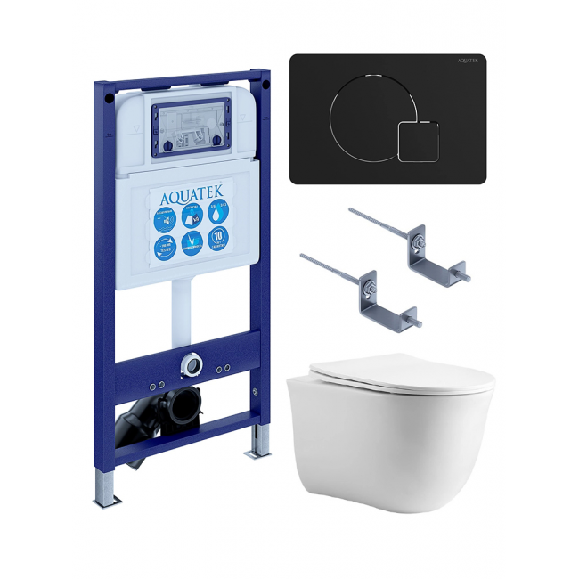 Комплект унитаз с инсталляцией, кнопкой и сиденьем SET AQUATEK КЛАССИК cm-069 4в1 безободковый купить с доставкой. 100% Оригинал. Гарантия!