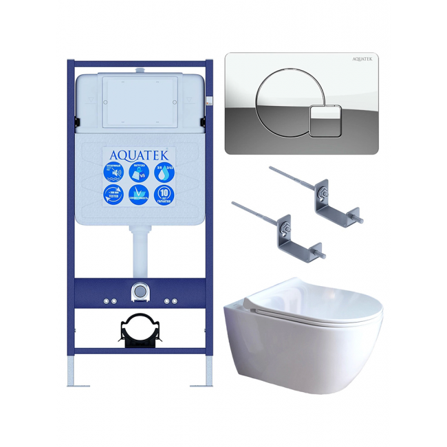 Комплект унитаз с инсталляцией, кнопкой и сиденьем SET AQUATEK ПОЛАРИС-01-067 4в1 безободковый купить с доставкой. 100% Оригинал. Гарантия!