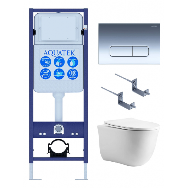 Унитаз Aquatek изготовлен из 100% санитарного фарфора, который сохраняет безупречную белизну на протяжении всего срока службы. Сиденье легко снимается для уборки одним нажатием кнопки. Механизм Soft Close обеспечивает плавное закрытие крышки унитаза. Безободковая конструкция унитаза облегчает уборку.