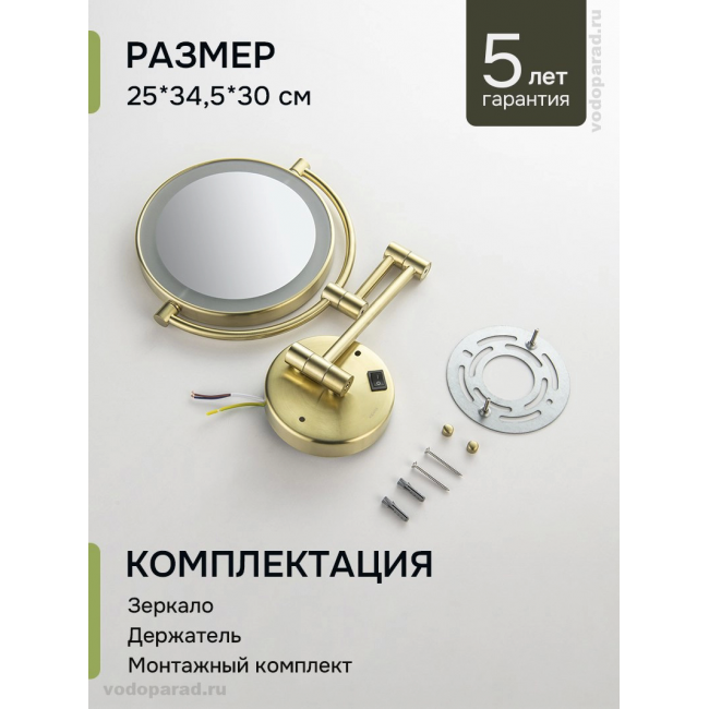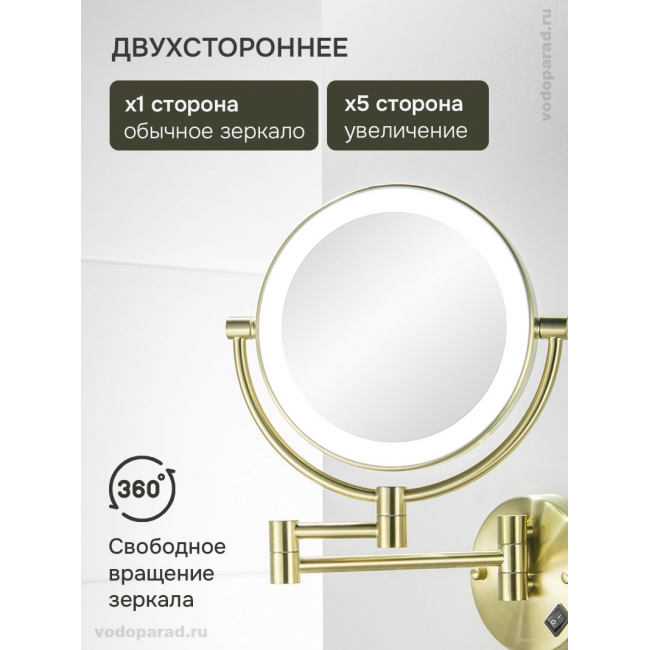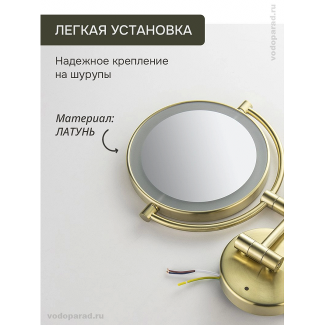 Косметическое зеркало Aquatek AQ4912BG шлифованное золото купить с доставкой. 100% Оригинал. Гарантия!