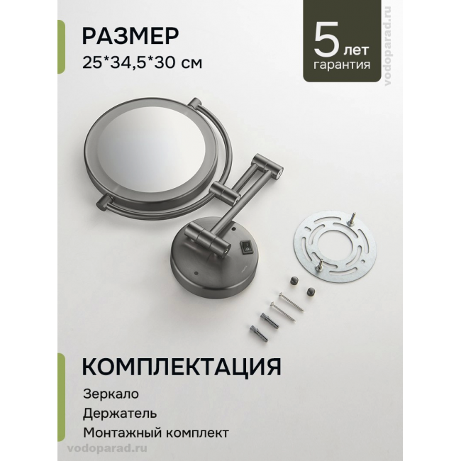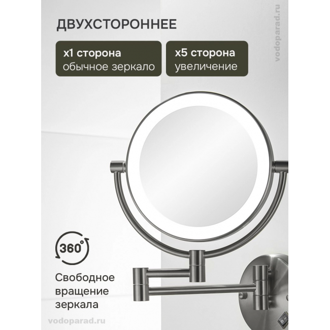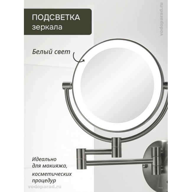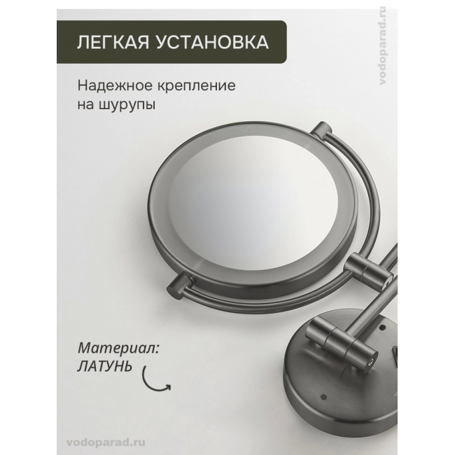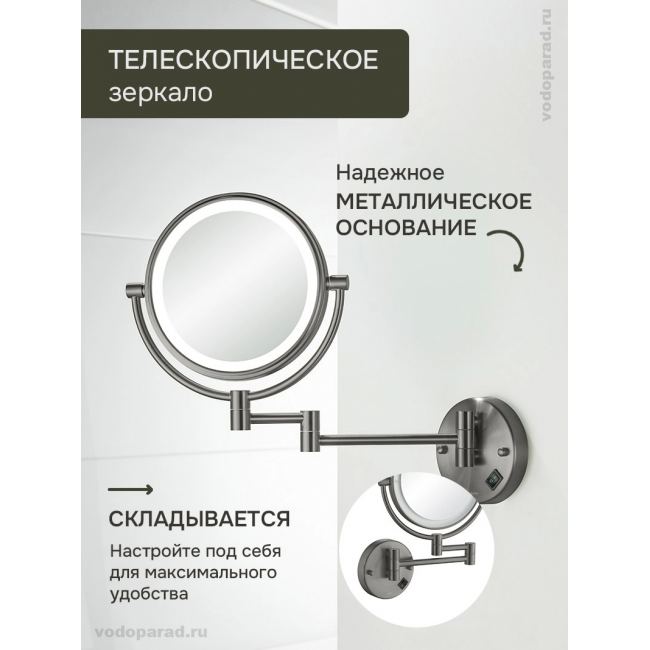 Косметическое зеркало Aquatek AQ4912BGM оружейная сталь купить с доставкой. 100% Оригинал. Гарантия!