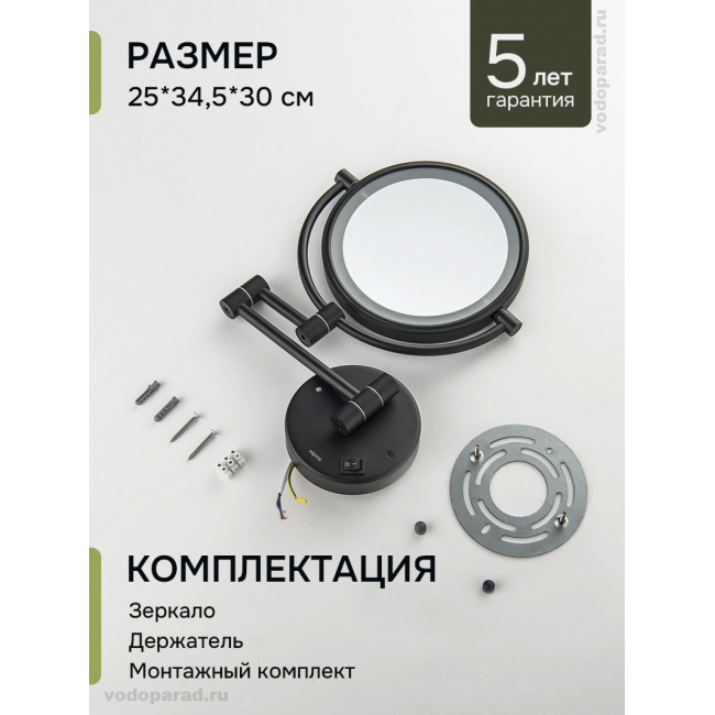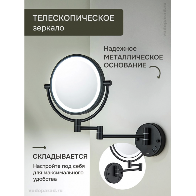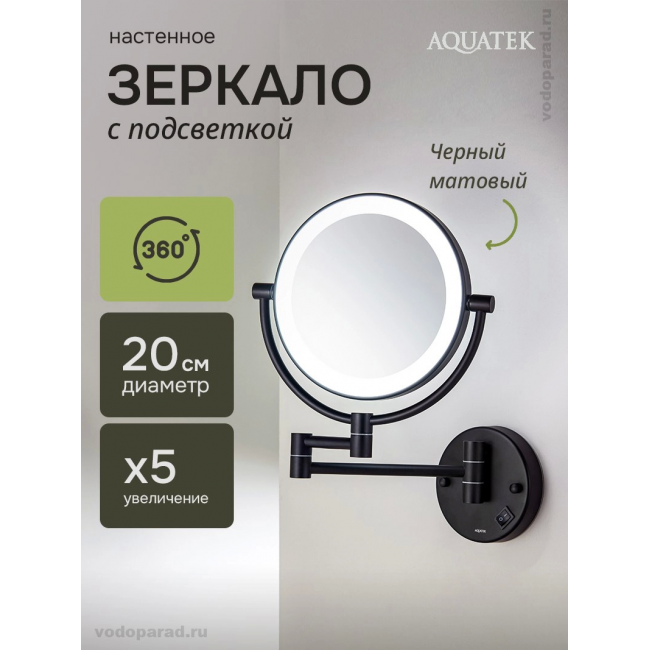 Косметическое зеркало Aquatek AQ4912MB черный купить с доставкой. 100% Оригинал. Гарантия!