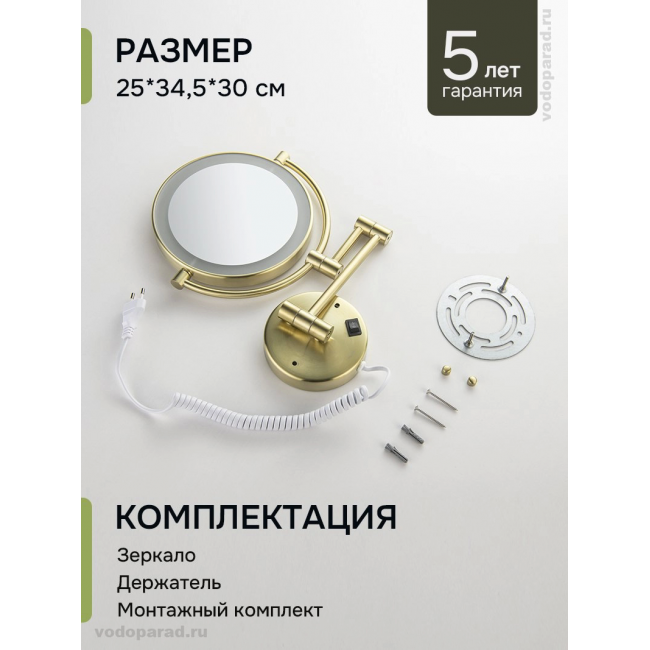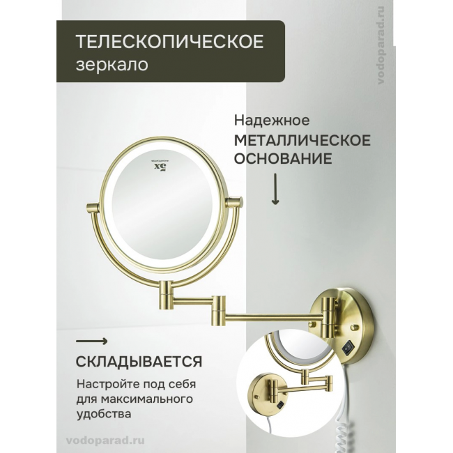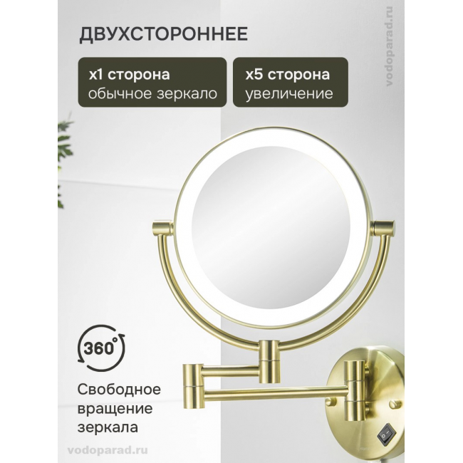 Косметическое зеркало Aquatek AQ4915BG шлифованное золото купить с доставкой. 100% Оригинал. Гарантия!