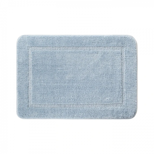 Мягкий коврик для ванной нежного голубого цвета с плотным невысоким ворсом (1 см), очень приятный на ощупь. Ворс из микрофибры отлично держит форму, легко чистится и быстро сохнет. Коврик подойдет для ванной и туалета.