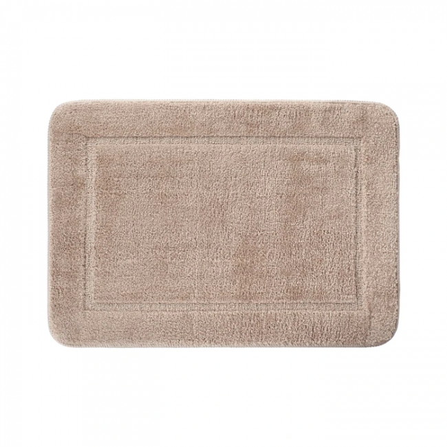 Мягкий коврик для ванной стильного светло-коричневого цвета с плотным невысоким ворсом (1 см), очень приятный на ощупь. Ворс из микрофибры отлично держит форму, легко чистится и быстро сохнет.