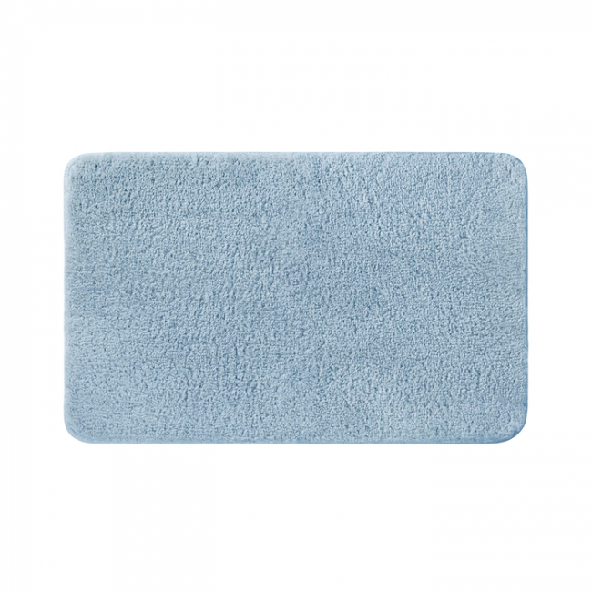 Мягкий коврик для ванной светло-синего цвета с плотным высоким ворсом (2 см), очень приятный на ощупь. Стриженый ворс из микрофибры отлично держит форму, легко чистится и быстро сохнет. Коврик подойдет для ванной и туалета. • Этот коврик в ванную противоскользящий: основа из экологичной термопластичной резины (TPR) позволяет не скользить на гладком и влажном кафеле. Подходит для использования в помещениях с теплыми полами. • Благодаря современным влагостойким материалам и качественной обработке краев коврик не потеряет яркости красок, не обветшает и надолго останется привлекательным как в день покупки.• Несложно ухаживать: разрешена деликатная стирка при температуре до 40 градусов с жидким моющим средством; не сушить на батарее, избегать солнечных лучей.