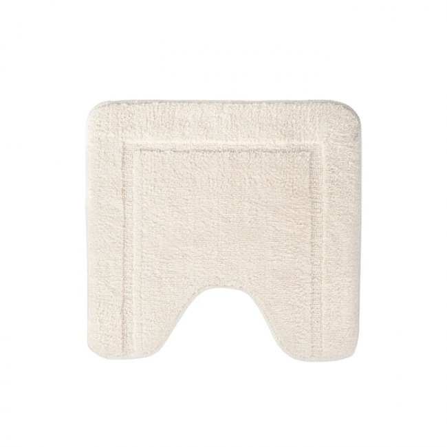 Мягкий коврик для ванной светло-бежевого цвета с плотным невысоким ворсом (1 см), очень приятный на ощупь. Ворс из микрофибры отлично держит форму, легко чистится и быстро сохнет. Коврик имеет вырез под унитаз и предназначен для туалета.