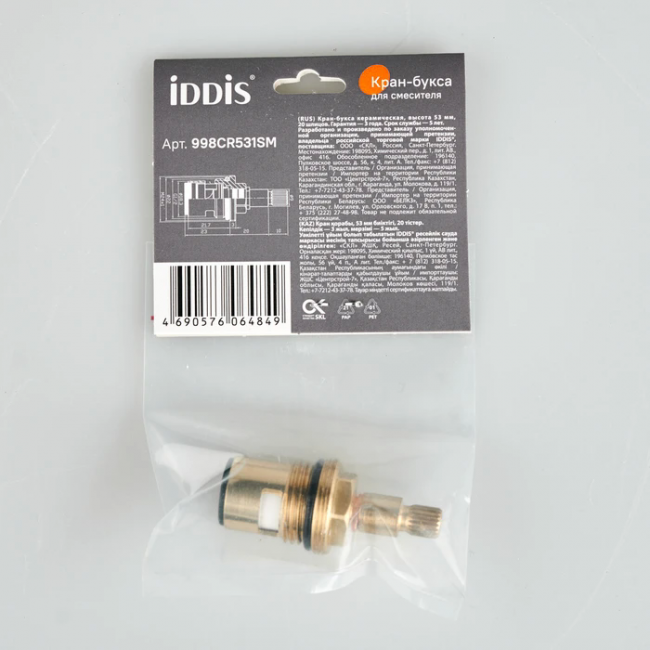 Кран-букса керамическая, 180°, 20 зубцов, G 1/2", M24, h=53 мм, IDDIS (998CR531SM) купить с доставкой. 100% Оригинал. Гарантия!