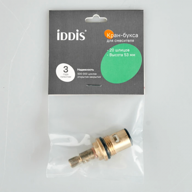 Кран-букса IDDIS® используется для комплектации двуручных смесителей и позволяет осуществить подачу и перекрытие водных потоков. Точная и удобная настройка температуры и напора воды возможна благодаря увеличенному (180о) углу поворота. Кран-букса IDDIS® обеспечивает комфортный поток воды в любой среде, в том числе в условиях ремонта водопроводных сетей. Изделие работает надежно и бесшумно, абсолютно безопасно даже при длительном контакте с водой. Данная модель длиной 53 мм с дополнительной резьбой для колпачка подходит для рукояток с посадочным диаметром 21 мм и 20-ю шлицами. • Увеличенный срок бесперебойной службы кран-буксы IDDIS® (более 300 000 циклов) обусловлен высоким качеством ее механизмов: изделие оснащено герметичными дисками, изготовленными из износостойкой керамики. • Керамическая кран-букса IDDIS® обладает повышенной ударопрочностью благодаря надежному корпусу из прочной латуни, стойкому к коррозии, резким изменениям давления и перепадам температуры воды. • Гарантия на кран-буксы IDDIS® – 3 года. (с) Авторский текст, ноябрь 2021 г.