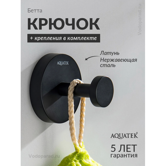 Крючок для ванной Aquatek Бетта AQ4601MB черный купить с доставкой. 100% Оригинал. Гарантия!