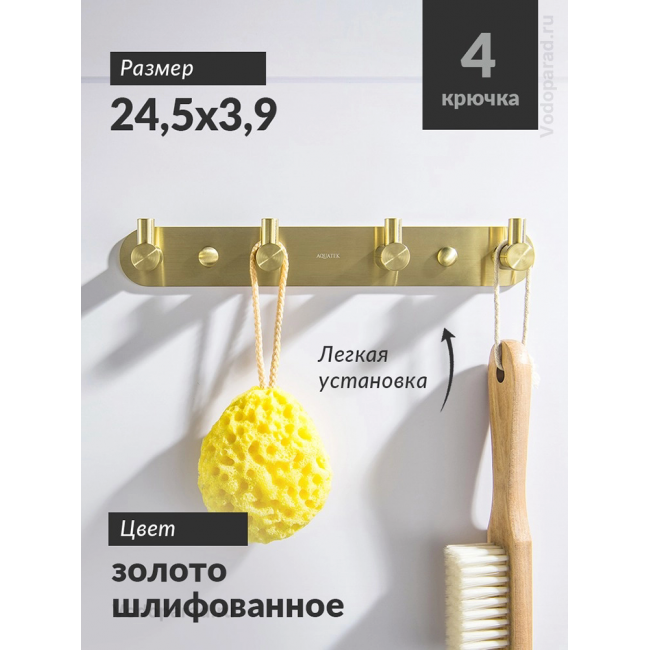 Крючок для ванной Aquatek Европа AQ4123BG шлифованное золото купить с доставкой. 100% Оригинал. Гарантия!