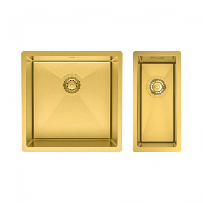 Комплект золотых моек Edifice перевернет представление о привычных мойках благодаря современному дизайну и эргономичности, достойных кухни шеф-повара. Это актуальное практичное решение с двумя чашами шириной 400х400 и 170х400: одна для мытья посуды, вторая – для мытья фруктов и овощей, разморозки продуктов и установки измельчителя. Для шкафа от 80 см. Глубина 20 см.Универсальный монтаж: подходят для врезного и подстольного.Произведены ручным способом – идеальная геометрия с малым радиусом скругления углов, что увеличивает рабочее пространство: удобно мыть много посуды и крупные предметы.В комплекте все необходимое: 2 набора крепежей, 2 выпуска, плоский сифон для мойки 44 см (занимает меньше места, освобождая полезное пространство снизу). Качественная нержавеющая сталь AISI 304, содержит 18 % хрома и 8% никеля, что надежно защищает от коррозии. Толщина стали 1 мм. Стойкая к износу, выдерживает различные t, легко моется, долго служит. При правильном уходе надолго сохранит привлекательный внешний вид. Специальные ребра-уклоны для стока воды.Антишумовое покрытие и полимерные накладки на оборотной стороне снижают шум при использовании.Гарантия на мойки – 15 лет, на выпуски и сифон – 1 год.
