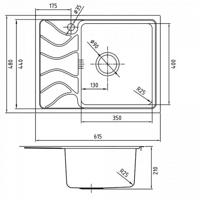 Оригинальный рисунок крыла моек в коллекции Reeva напоминает речные волны. Исключительно малый радиус закругления углов и увеличенная глубина чаши 210 мм позволяют вмещать даже габаритную посуду. Прямоугольная мойка Reeva с шелковистой поверхностью подойдет к большинству современных кухонных гарнитуров и тумб от 45 см. Слева мойка оснащена крылом, на котором удобно сушить вымытую посуду, овощи или фрукты. Компактные габариты крыла позволяют сохранить больше полезного пространства кухонной зоны, не в ущерб его функциональности. Мойка полностью готова к установке, все необходимое для монтажа поставляется в комплекте: механический выпуск с переливом, крепеж и эластичная уплотнительная лента, которая защитит периметр мойки от протечек.Качественная нержавеющая сталь толщиной 0,9 мм обеспечивает надежность, ударопрочность мойки и ее стойкость к износу.Специальное антишумовое покрытие и полимерные накладки на оборотной стороне чаши снижают шум при использовании мойки.Гарантия на мойку Reeva составляет 15 лет, на выпуск (входит в комплект) – 1 год.