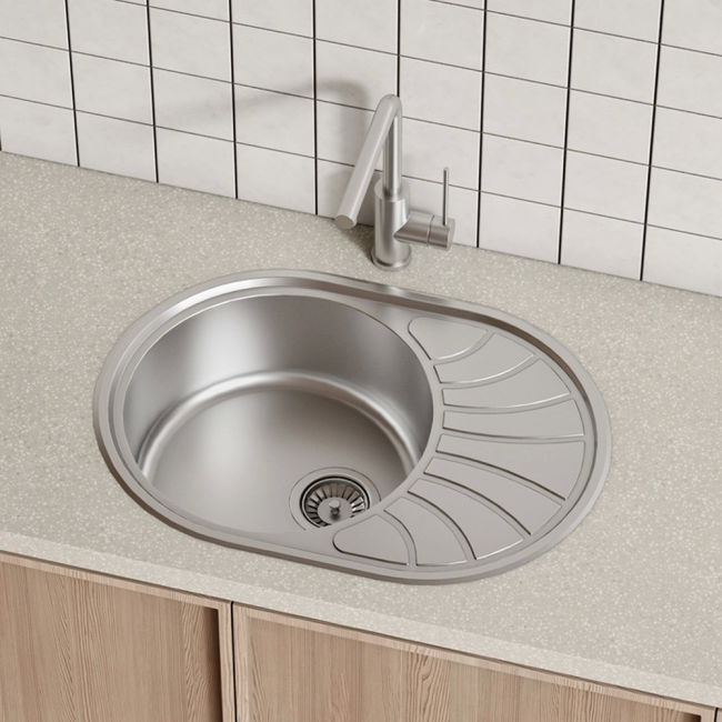 Мойка Suno для тех, кто предпочитает классику: округлые очертания чаши и эстетичный веерообразный узор крыла. Отлично подойдет для небольших кухонь, где на счету каждый рабочий сантиметр. На крыле удобно сушить столовые приборы. Имеет текстуру с эффектом шелковой поверхности благодаря специальной обработке стали. Мойка из качественной нержавеющей стали AISI 304; сталь содержит 18% хрома и 8% никеля, что надежно защищает ее от коррозии. Стойкая к износу, выдерживает различные t, легко моется, долго служит. При правильном уходе надолго сохранит привлекательный внешний вид. Специальное антишумовое покрытие и полимерные накладки на обороте чаши снижают шум при использовании. Монтаж максимально удобен и универсален: мойка устанавливается сверху в столешницу крылом налево или направо. Все необходимое для монтажа в комплекте: сифон, крепеж, шаблон для выреза в столешнице, эластичная уплотнительная лента для защиты от протечек. Гарантия на мойку Suno – 15 лет, на крепления и сифон – 1 год.