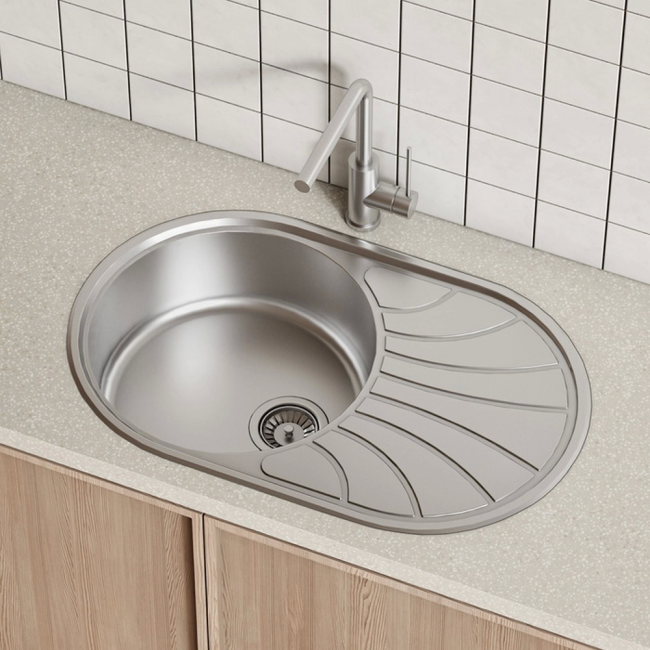 Мойка Suno для тех, кто предпочитает классику: округлые очертания чаши и эстетичный веерообразный узор крыла. Отлично подойдет для небольших кухонь, где на счету каждый рабочий сантиметр. На вместительном крыле удобно сушить столовые приборы. Имеет текстуру с эффектом шелковой поверхности благодаря специальной обработке стали. Мойка из качественной нержавеющей стали AISI 304 толщиной 0,8 мм; сталь содержит 18% хрома и 8% никеля, что надежно защищает ее от коррозии. Стойкая к износу, выдерживает различные t, легко моется, долго служит. При правильном уходе надолго сохранит привлекательный внешний вид. Специальное антишумовое покрытие и полимерные накладки на обороте чаши снижают шум при использовании. Монтаж максимально удобен и универсален: мойка устанавливается сверху в столешницу крылом налево или направо. Все необходимое для монтажа в комплекте: сифон, крепеж, шаблон для выреза в столешнице, эластичная уплотнительная лента для защиты от протечек. Гарантия на мойку Suno – 15 лет, на крепления и сифон – 1 год.