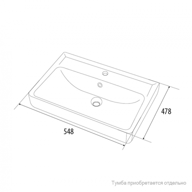 Умывальник мебельный. Материал: фаянс. Размеры: 478х548 мм (ДхШ). Подходит к тумбам Carlow 55, Custo 55.