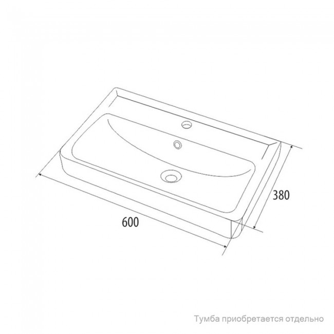 Умывальник мебельный. Материал: фаянс. Размеры: 380х600 мм (ДхШ). Подходит к тумбе Sena 60.