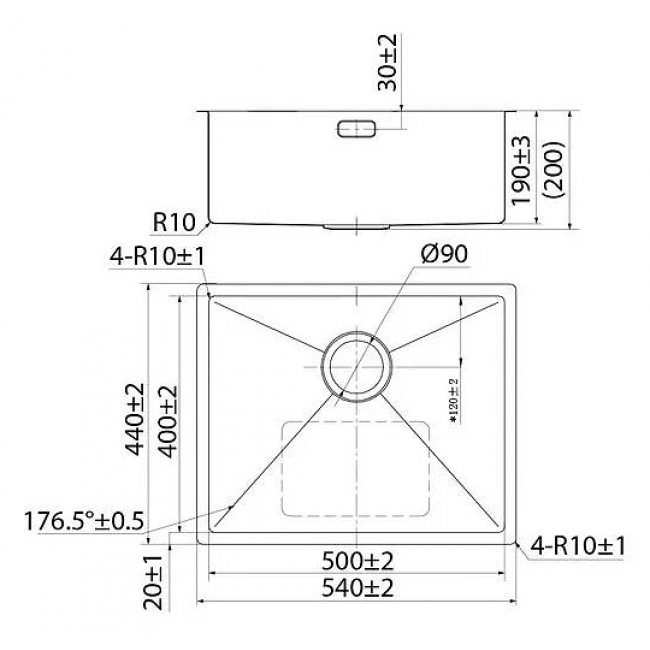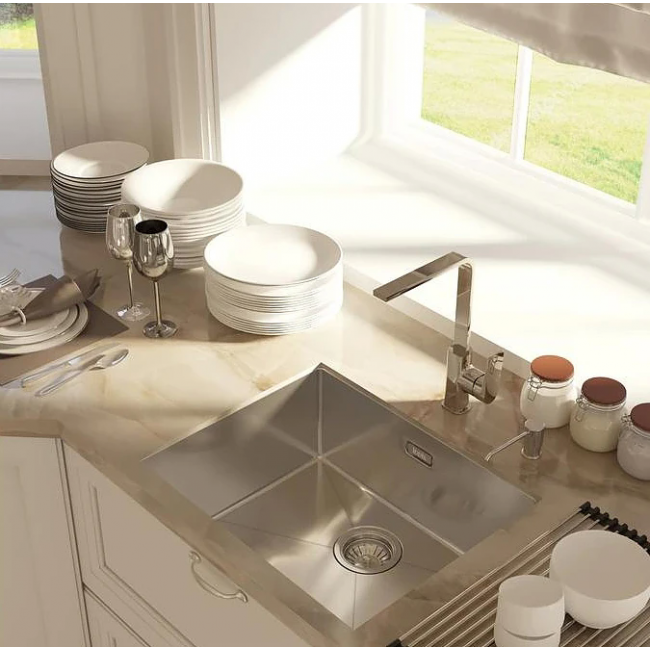 Мойка, нержавеющая сталь, марки AISI 304, поверхность матовая. Размер: 540х440 мм, глубина 200 мм. Ширина шкафа: от 60 см. В комплекте: механический выпуск, крепления