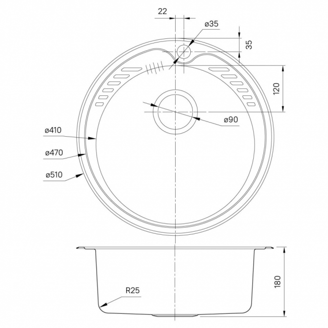 Комплектация: уплотнительная прокладка, крепления; Размер мойки: 510 мм; Сталь: нержавеющая, 0,8 мм; Ширина шкафа: от 45 см; Глубина чаши: 180 мм