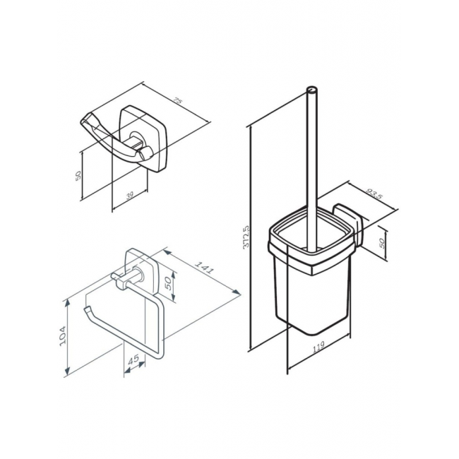 Занимая минимум места в пространстве, аксессуары Gem помогут рационально организовать место для хранения и станут стильными акцентами в интерьере. В комплекте: двойной крючок для полотенец, держатель для туалетной бумаги, стойка с туалетной щеткой.