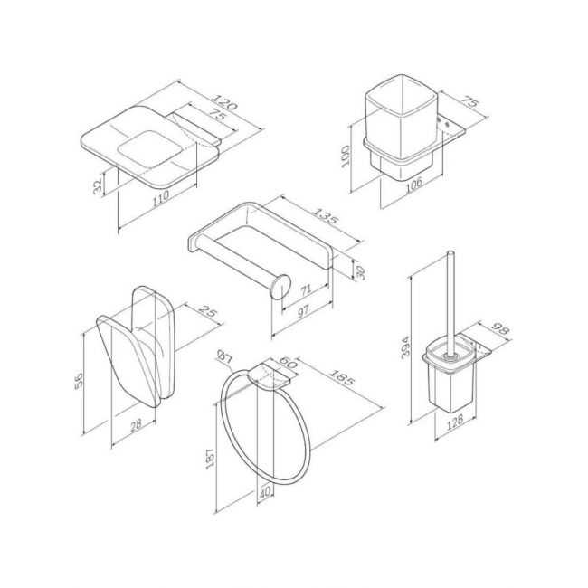 Занимая минимум места в пространстве, аксессуары Inspire V2.0 помогут рационально организовать место для хранения и станут стильными акцентами в интерьере. В комплекте: стеклянная мыльница, стеклянный стакан, крючок для полотенец. кольцо для полотенец, держатель для туалетной бумаги, стойка с туалетной щеткой.