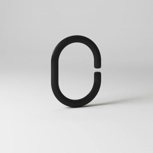 Набор из 12 колец для шторы в ванную комнату в форме буквы С. Кольца изготовлены из пластика стильного антрацитового цвета, благодаря чему подойдут как к темной шторе, так и к интерьеру в темных тонах. Гарантия — 1 год.