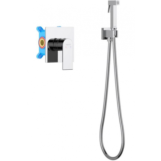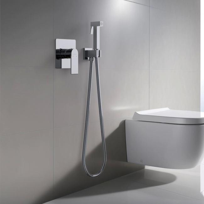 | Комплектация | 1. Смеситель для душа (внешняя и скрытая часть) 2. Душевой гарнитур: гигиеническая лейка, шланг, шланговое подсоединение с держателем 3. Декоративные накладки на стену из нержавеющей стали 3 мм |