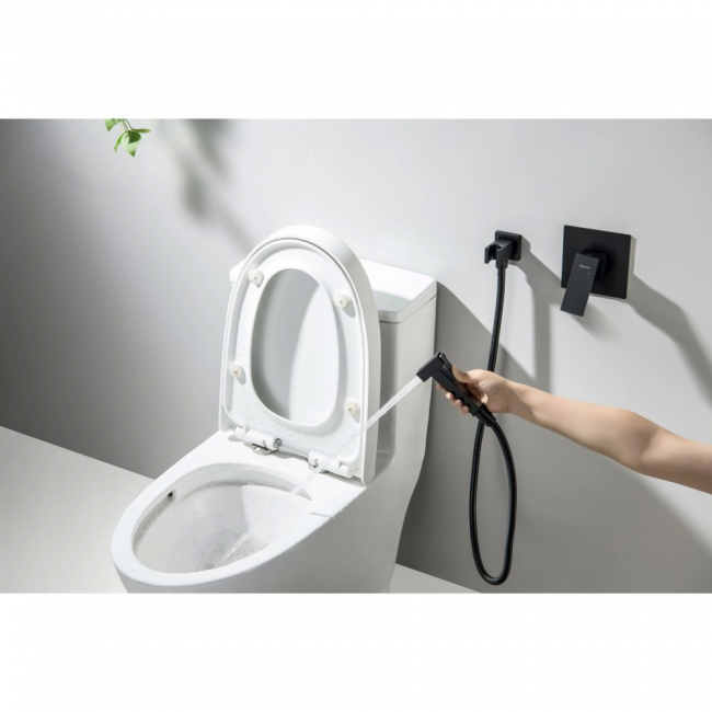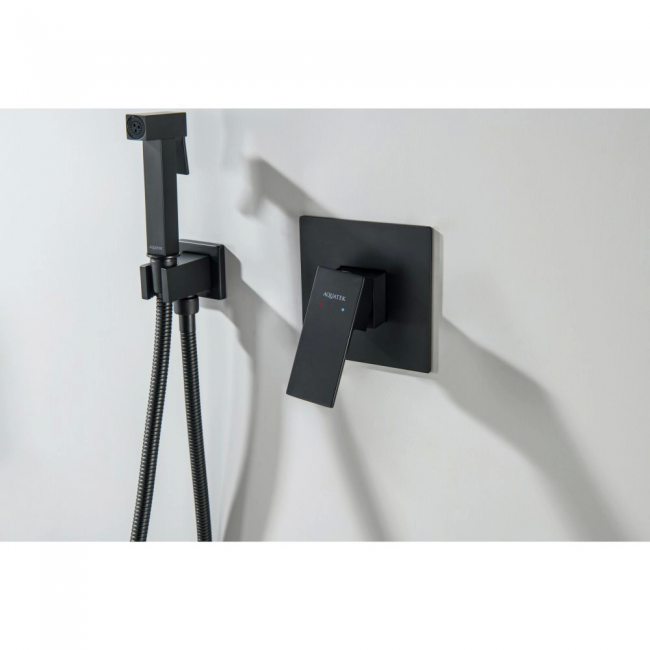 Набор с гигиеническим душем (смеситель + гигиеническая лейка + шланг + шланговое подсоединение с держателем) AQUATEK, матовый черный AQ1419MB ЛИРА купить с доставкой. 100% Оригинал. Гарантия!