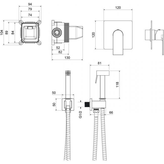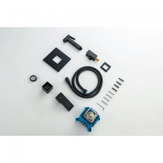 | Комплектация | 1. Смеситель для душа (внешняя и скрытая часть) 2. Душевой гарнитур: гигиеническая лейка, шланг, шланговое подсоединение с держателем 3. Декоративные накладки на стену из нержавеющей стали 3 мм |