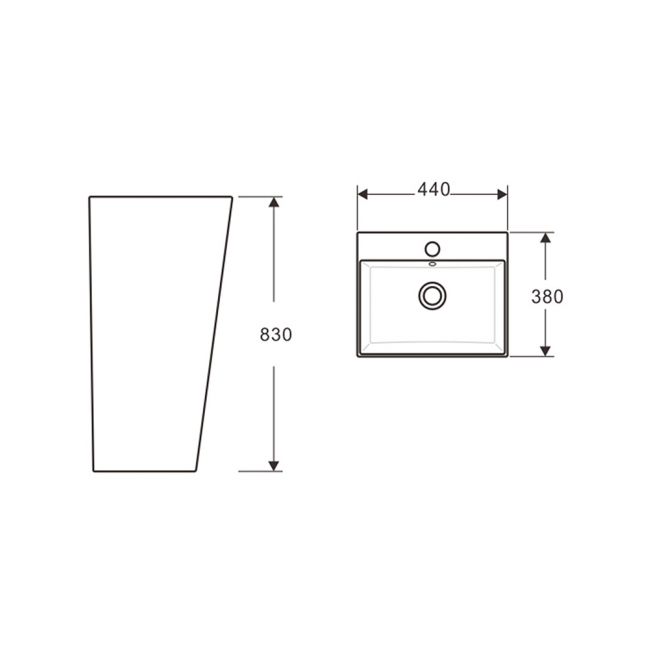 • Конструкция: состоит из монолитной чаши умывальника-пьедестала (стойки), что придаёт сантехнике изысканный и завершённый вид.