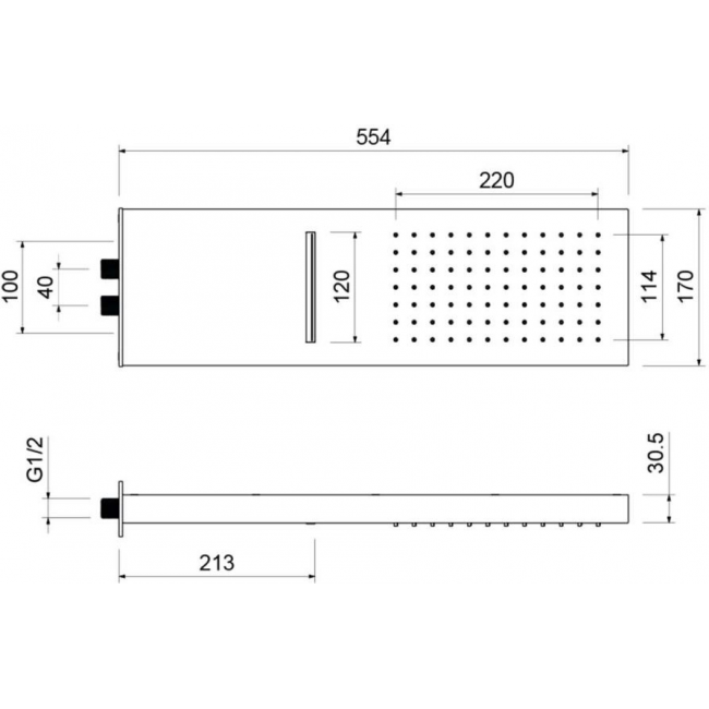 | Размер верхнего душа, см | 55,0X17,0х3,0 |