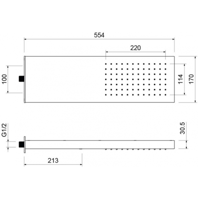 | Размер верхнего душа, см | 55,0X17,0х3,0 |