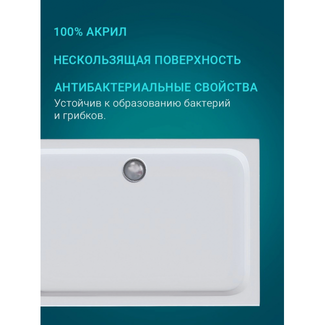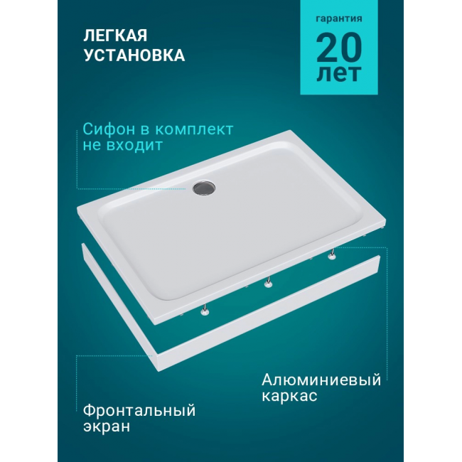 Акриловый поддон для душа — это современное и практичное решение для создания комфортного пространства в ванной комнате.Сантехнический акрил, из которого изготовлен поддон, это легкий, но в то же время очень прочный и надежный материал. Акрил не желтеет со временем и не впитывает грязь, легко моется и устойчив к воздействию бытовой химии. Нескользкая, но при этом гладкая поверхность, предотвращает развитие бактерий и грибков, обеспечивает комфорт и безопасность при душа. Акрил долго сохраняет тепло, что делает душевые процедуры более комфортными, особенно в холодное время года. Поддон устанавливается на цельносварной алюминиевый каркас с ножками, регулируемыми по высоте. Конструкция по всей площади усилена закладными из ДСП. Фронтальный экран легко снимается для доступа к сифону и коммуникациям, а низкий порожек делает вход удобным. Душевой поддон можно использовать как самостоятельно, так и в комплекте с душевыми уголками и ограждениями.Товар соответствует всем международным стандартам качества.