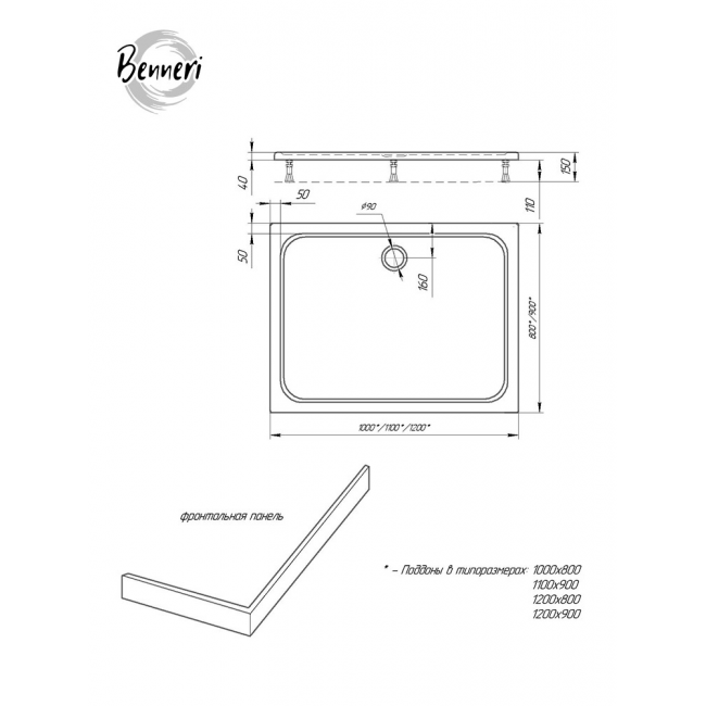 Поддон для душа Benneri 100x80 BE.RA.100x80 купить с доставкой. 100% Оригинал. Гарантия!