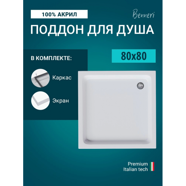 Поддон для душа Benneri 80x80 BE.KV.80x80 купить с доставкой. 100% Оригинал. Гарантия!