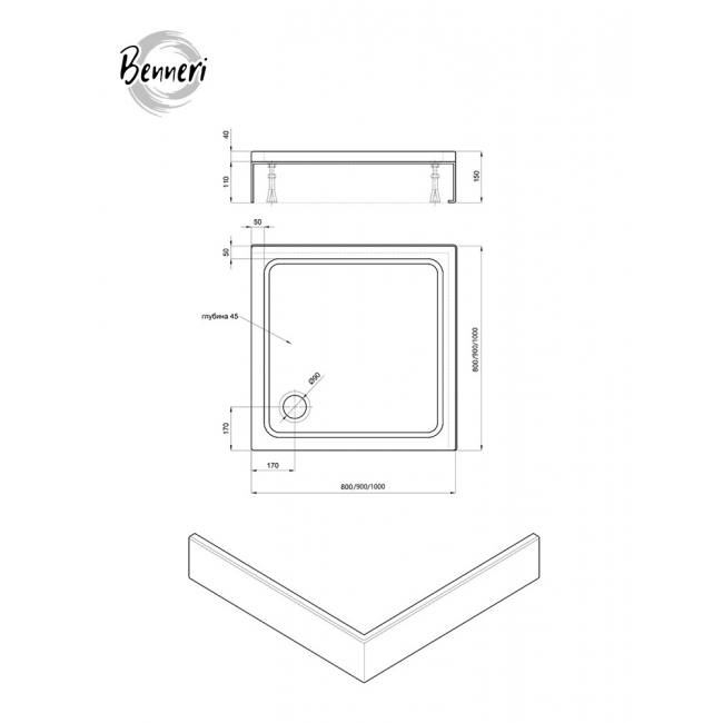 Поддон для душа Benneri 90x90 BE.KV.90x90S купить с доставкой. 100% Оригинал. Гарантия!