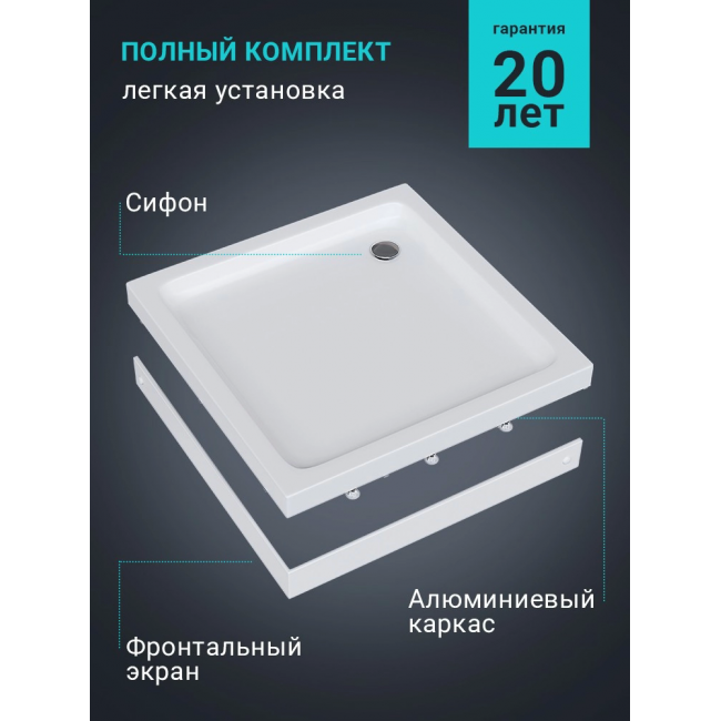 Акриловый поддон для душа — это современное и практичное решение для создания комфортного пространства в ванной комнате.Сантехнический акрил, из которого изготовлен поддон, это легкий, но в то же время очень прочный и надежный материал. Акрил не желтеет со временем и не впитывает грязь, легко моется и устойчив к воздействию бытовой химии. Нескользкая, но при этом гладкая поверхность, предотвращает развитие бактерий и грибков, обеспечивает комфорт и безопасность при душа. Акрил долго сохраняет тепло, что делает душевые процедуры более комфортными, особенно в холодное время года. Поддон устанавливается на цельносварной алюминиевый каркас с ножками, регулируемыми по высоте. Конструкция по всей площади усилена закладными из ДСП. Фронтальный экран легко снимается для доступа к сифону и коммуникациям, а низкий порожек делает вход удобным. Душевой поддон можно использовать как самостоятельно, так и в комплекте с душевыми уголками и ограждениями.Поддон Benneri поставляется в комплекте со всеми необходимыми комплектующими и полностью готов к установке, докупать ничего не нужно.Товар соответствует всем международным стандартам качества. Гарантия – 20 лет.