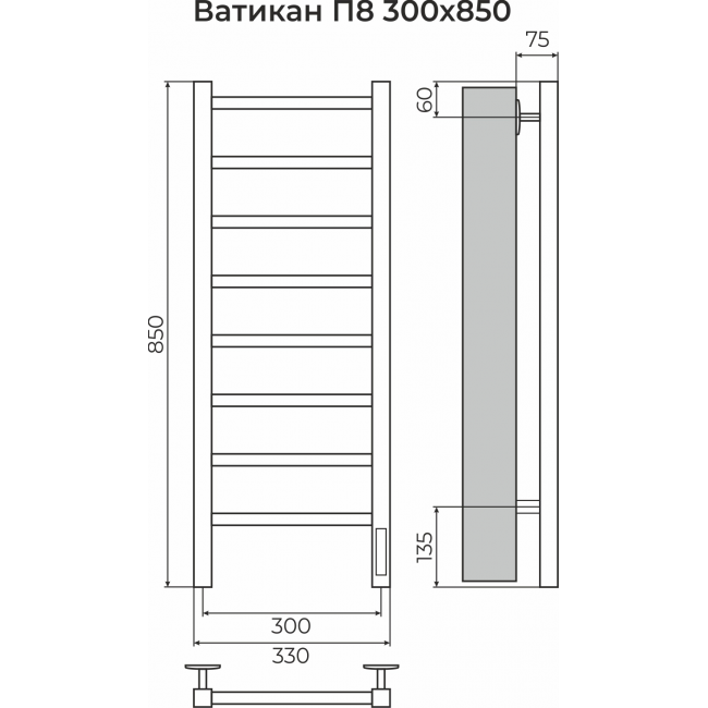 Полотенцесушитель электрический 300х850 Terminus Ватикан 4670078553430 хром купить с доставкой. 100% Оригинал. Гарантия!