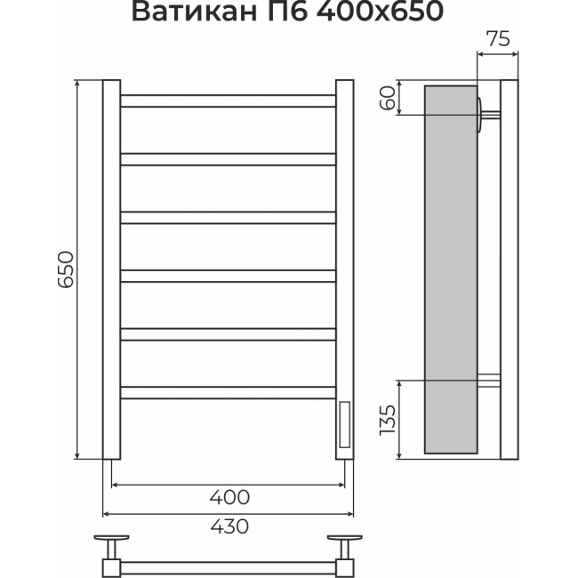Полотенцесушитель электрический 400х650 Terminus Ватикан 4670078557148 хром купить с доставкой. 100% Оригинал. Гарантия!