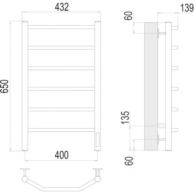 - Межосевое расстояние полотенцесушителя, мм: 400