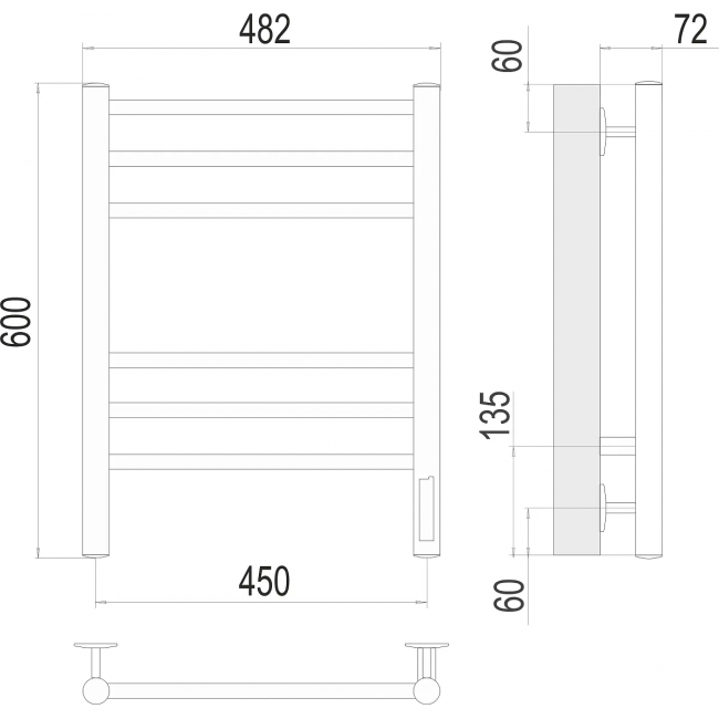 - Межосевое расстояние полотенцесушителя, мм: 450
