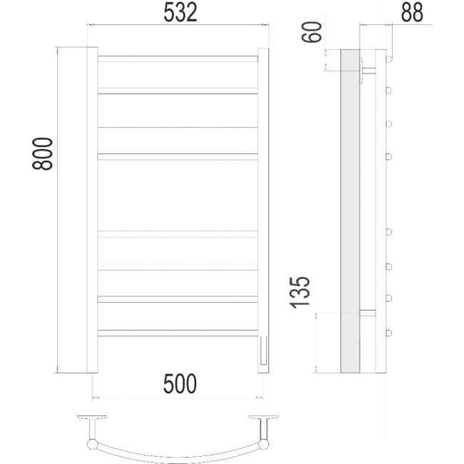 Полотенцесушитель электрический 500х800 Terminus Классик 4670078542991 черный купить с доставкой. 100% Оригинал. Гарантия!